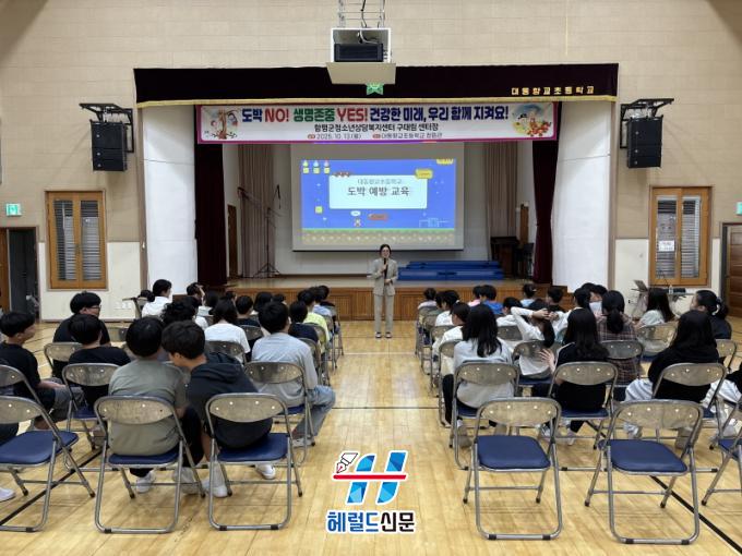 [Çì·²µå½Å¹® = Àü¿µ±Ô ±âÀÚ] ÇÔÆò±ºÃ»¼Ò³â»ó´ãº¹Áö¼¾ÅÍ¡¤ÇÔÆò±ºÇб³¹Ûû¼Ò³âÁö¿ø¼¾ÅÍ ±¸Å¸² ¼¾ÅÍÀåÀº Á÷Á¢ °»ç·Î ³ª¼ Áö³ 10¿ù 13ÀÏ ´ëµ¿Çâ±³ÃʵîÇб³ Àü±³»ýÀ» ´ë»óÀ¸·Î ¡®Ã»¼Ò³â µµ¹Ú ¿¹¹æ ¹× »ý¸íÁ¸Áß ±³À°¡¯À» ¼º°øÀûÀ¸·Î ÁøÇàÇß´Ù°í ¹àÇû´Ù.