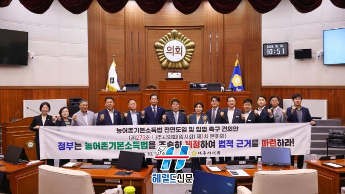 [Çì·²µå½Å¹® = ³ë½Â¾ð ±âÀÚ] ³ªÁÖ½ÃÀÇȸ(ÀÇÀå ÀÌÀç³²)´Â 15ÀÏ Á¦273ȸ ÀÓ½Ãȸ Á¦1Â÷ º»È¸ÀǸ¦ ¿°í ¡®³ó¾îÃ̱⺻¼Òµæ¹ý Àü¸éµµÀÔ ¹× ÀÔ¹ý Ã˱¸ °ÇÀǾȡ¯À» äÅÃÇß´Ù.