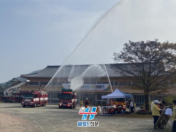 ¿ÃÇØ Àç³ ´ëÀÀ ¾ÈÀüÇѱ¹ÈÆ·ÃÀº °í½Î¿ò³îÀÌ Àü¼ö±³À°°ü¿¡¼ º¹ÇÕ Àç³ÀÌ µ¿½Ã¿¡ ¹ß»ýÇÏ´Â »óȲÀ» °¡Á¤ÇÑ °¡»ó ½Ã³ª¸®¿À¿¡ µû¶ó ½ÇÀü°ú °°Àº ÈÆ·ÃÀ¸·Î ÁøÇàµÇ¸ç, È¥¶õÇÑ ÇöÀåÀ» ºü¸£°Ô ¼ö½ÀÇÏ¸é¼ ÁֹεéÀÇ »ý¸í°ú Àç»ê ÇÇÇØ µîÀ» ÃÖ¼ÒÈÇÏ´Â ¹æÇâÀ¸·Î Àü°³µÈ´Ù.