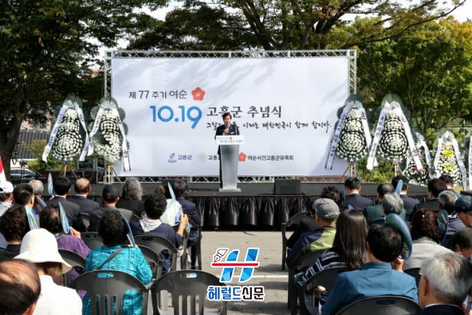 [Çì·²µå½Å¹® = ³ë½Â¾ð ±âÀÚ] °íÈﱺ(±º¼ö °ø¿µ¹Î)Àº 17ÀÏ ¡¸¿©¼ö¡¤¼øÃµ 10¡¤19»ç°Ç¡¹ ¹ß»ý 77Áֱ⸦ ¸Â¾Æ Èñ»ýÀÚµéÀ» ±â¸®´Â °ø½Ä Ãß³ä½ÄÀ» À§·Éž ¾Õ¿¡¼ ¾ö¼÷È÷ °ÅÇàÇß´Ù.