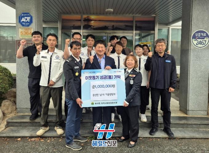 [Çì·²µå½Å¹® = Á¤¾ç¼® ±âÀÚ] ÀåÈﱺ ¿ë»ê¸é ³²³à ÀÚÀ²¹æ¹ü´ë(´ëÀå ¹é°èÇö, ±èÀº¹Ì)°¡ Áö¿ª»çȸ ÀÌ¿ôÀ» À§ÇÑ µû¶æÇÑ ¸¶À½À» ÀüÇϸç 100¸¸ ¿øÀ» ±âºÎÇß´Ù.