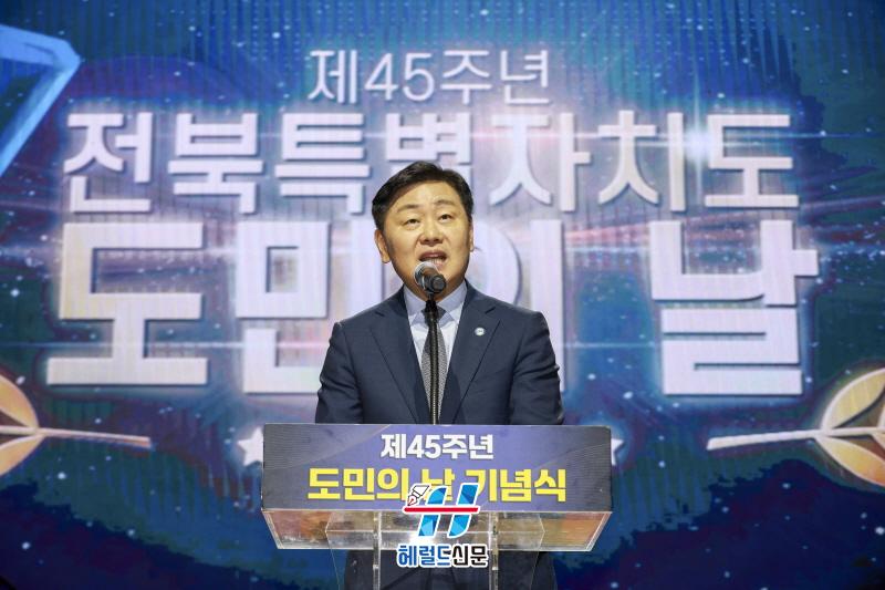 [Çì·²µå½Å¹® = ³ë½Â¾ð ±âÀÚ] ÀüºÏƯº°ÀÚÄ¡µµ´Â 10¿ù 20ÀÏ(¿ù), ÀüºÏµµÃ» °ø¿¬Àå¿¡¼ Á¦45ÁÖ³â ÀüºÏƯº°ÀÚÄ¡µµ µµ¹ÎÀÇ ³¯ ±â³äÇà»ç¸¦ ¿¾ú´Ù°í ¹àÇû´Ù. À̹ø Çà»ç¿¡´Â µµ³» ±â°ü¡¤´ÜüÀå, ÃâÇâµµ¹Î, ÀüºÏÀδë»ó ¼ö»óÀÚ µî 900¿© ¸íÀÌ Âü¼®ÇØ ÀüºÏÀÇ »õ·Î¿î 100³â µµ¾àÀ» ÇÔ²² ´ÙÁüÇÏ´Â ¶æ±íÀº ½Ã°£À» °¡Á³´Ù.