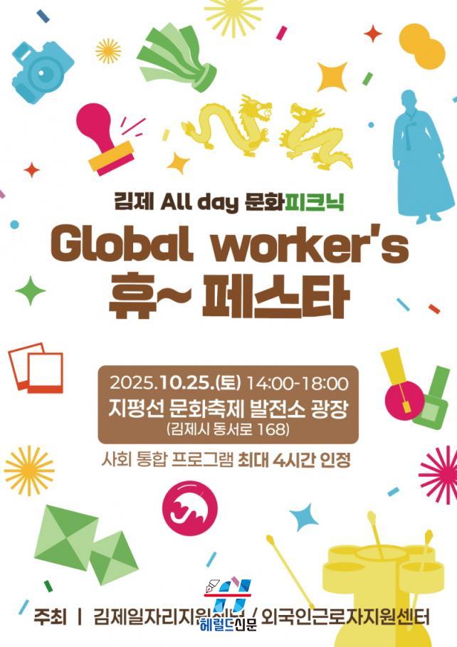 ½Ã´Â ¿À´Â 25ÀÏ ¿ÀÈÄ 2½ÃºÎÅÍ 6½Ã±îÁö ¿äÃ̵¿¿¡ À§Ä¡ÇÑ ÁöÆò¼±¹®ÈÃàÁ¦¹ßÀü¼Ò ±¤Àå(±èÁ¦½Ã µ¿¼·Î 168)¿¡¼ ¿Ü±¹ÀαٷÎÀÚ¿Í ½Ã¹ÎÀÌ ÇÔ²² ¾î¿ï¸®´Â ¹®È±³·ù ÇѸ¶´ç ¡°±èÁ¦ All day ¹®ÈÇÇÅ©´Ð – Global worker¡¯s ÈÞ~Æä½ºÅ¸¡±¸¦ °³ÃÖÇÑ´Ù°í ¹àÇû´Ù.