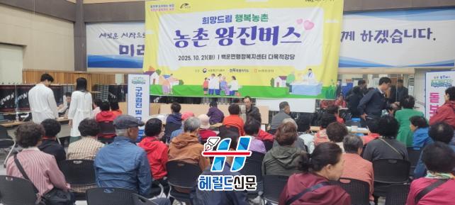 [Çì·²µå½Å¹® = ³ë½Â¾ð ±âÀÚ] Áø¾È±º°ú ¹é¿î³óÇùÀº 21ÀÏ ¹é¿î¸é ÇàÁ¤º¹Áö¼¾ÅÍ¿¡¼ ¹é¿î¸é°ú ¼º¼ö¸é Áö¿ª ÁֹΠ200¿© ¸íÀ» ´ë»óÀ¸·Î ¡®2025³â ã¾Æ°¡´Â ³óÃÌ ¿ÕÁø¹ö½º¡¯ »ç¾÷ 3Â÷ ¿î¿µÀ» ¼º°øÀûÀ¸·Î ¸¶ÃÆ´Ù.