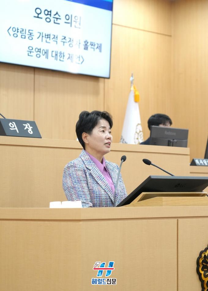 [Çì·²µå½Å¹® = ³ë½Â¾ð ±âÀÚ] ¿À¿µ¼ø ±¤ÁÖ ³²±¸ÀÇȸ ÀÇ¿øÀº 21ÀÏ Á¦315ȸ ÀÓ½Ãȸ 1Â÷ º»È¸ÀÇ¿¡¼ 5ºÐ ¹ß¾ðÀ» ÅëÇØ ¾ç¸²µ¿¿¡¼ ½ÃÇà ÁßÀÎ °¡º¯ÁÖÂ÷Á¦ Ȧ¦Á¦ÀÇ ½ÇÈ¿¼ºÀ» ÁöÀûÇϰí, ÁֹΠÀǰßÀ» ¹Ý¿µÇÑ Åº·ÂÀû ¿î¿µÀÇ Çʿ伺À» °Á¶Çß´Ù.