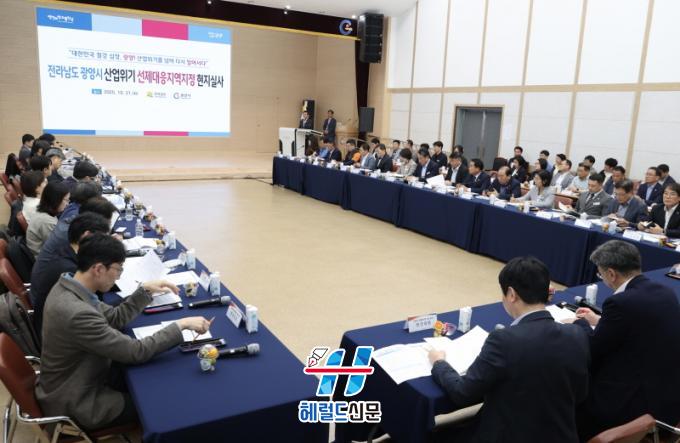 [Çì·²µå½Å¹® = ³ë½Â¾ð ±âÀÚ] Àü¶ó³²µµ´Â 21ÀÏ ±¤¾ç½Ã¿¡¼ ¿¸° »ê¾÷À§±â ¼±Á¦´ëÀÀÁö¿ª ÁöÁ¤ ÇöÁö ½Ç»ç¿¡¼ ö°»ê¾÷ÀÇ ±¸Á¶Àû À§±â »óȲÀ» ¼³¸íÇϰí Á¤ºÎÀÇ Àû±ØÀûÀÎ Áö¿ø°ú Á¶¼ÓÇÑ ÁöÁ¤À» °·ÂÈ÷ ¿äûÇß´Ù.