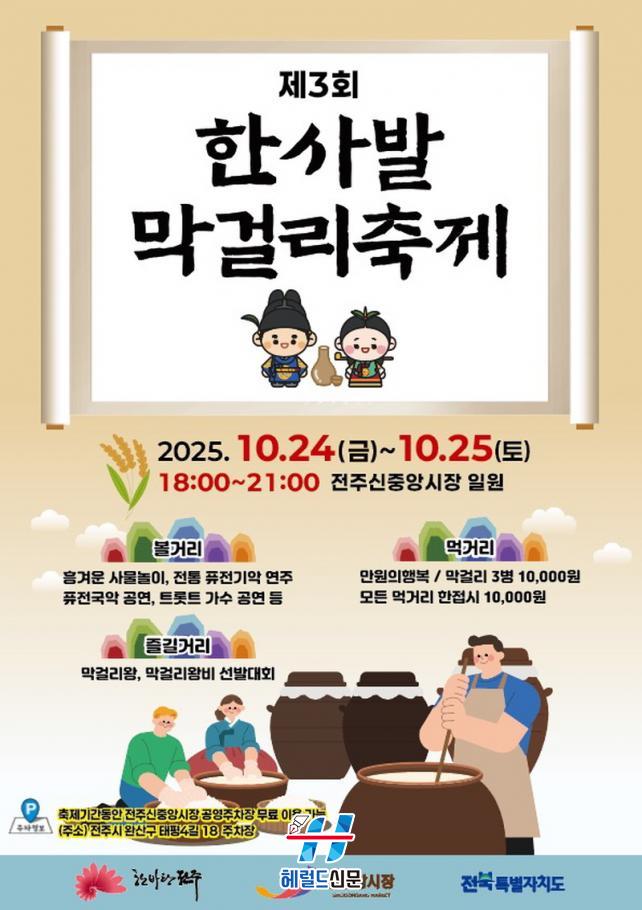 ÀüÁֽô ¿À´Â 24ÀϺÎÅÍ 25ÀϱîÁö ÀÌÆ²°£ ½ÅÁß¾Ó½ÃÀå ÀÏ¿ø¿¡¼ ¸·°É¸®¶ó´Â ÀüÅëÁÖ¸¦ Å׸¶·Î Áö¿ª ¸·°É¸®¿Í ´Ù¾çÇÑ ¾ÈÁÖ¸¦ ¼±º¸ÀÌ´Â ¡®Á¦3ȸ ÇÑ»ç¹ß¸·°É¸® ÃàÁ¦¡¯°¡ ¿¸°´Ù°í 22ÀÏ ¹àÇû´Ù.