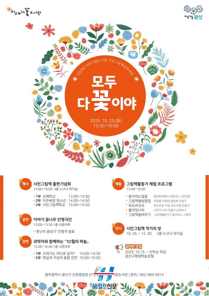 [Çì·²µå½Å¹® = ³ë½Â¾ð ±âÀÚ] ±¤ÁÖ ±¤»ê±¸(±¸Ã»Àå ¹Úº´±Ô)°¡ ¿î¿µÇÏ´Â À̾߱â²Éµµ¼°ü¿¡¼ 25ÀÏ ½Ã¹ÎÀÌ Á÷Á¢ ¸¸µç ±×¸²Ã¥°ú À̾߱⸦ ³ª´©´Â ÃàÁ¦¸¦ ¿¬´Ù.