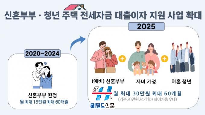 À̹ø »ç¾÷Àº 2020³âºÎÅÍ °áÈ¥ 7³â À̳» ¹«ÁÖÅà ½ÅÈ¥ºÎºÎ¸¦ ´ë»óÀ¸·Î ½ÃÇàÇØ ¿À´ø Á¦µµ¸¦ Àü¸é °³ÆíÇÑ °ÍÀÌ´Ù. ¿ÃÇØºÎÅÍ´Â ¿¹ºñ ½ÅÈ¥ºÎºÎ¡¤ÀڳడÁ¤¡¤¹ÌÈ¥ û³â µîÀ¸·Î Áö¿ø ´ë»óÀ» È®´ëÇϰí 3°³¿ù À̳» ÀüÀÔ ¿¹Á¤ÀÚµµ ½Åû °¡´ÉÇϵµ·Ï ¹®ÅÎÀ» ³·Ãè´Ù. ´Ù¸¸ Áö¿ø ¿¬·ÉÀº ¿©¼ö½Ã û³â ±âº» Á¶·Ê¿¡ µû¶ó 18¼¼ ÀÌ»ó 49¼¼ ÀÌÇÏ¿¡¼ 18¼¼ ÀÌ»ó 45¼¼ ÀÌÇÏ·Î Á¶Á¤µÆ´Ù.