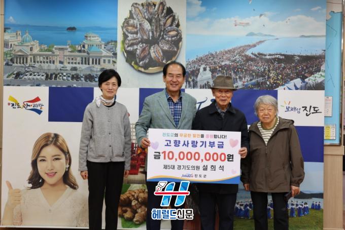 [Çì·²µå½Å¹® = ¼Û±Ù³² ±âÀÚ] Áøµµ±ºÀº Á¦5´ë °æ±âµµÀÇȸ ÀÇ¿øÀ» Áö³½ ¼³Èñ¼® °æ±âµµÀÇÁ¤È¸ ºÎȸÀåÀÌ ÃÖ±Ù °íÇâ»ç¶û±âºÎ±Ý 1,000¸¸ ¿øÀ» Áøµµ±º¿¡ Àü´ÞÇß´Ù°í ¹àÇû´Ù.