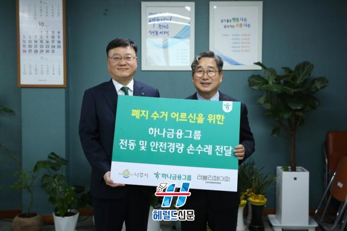 [Çì·²µå½Å¹® = ³ë½Â¾ð ±âÀÚ] ³ªÁÖ½Ã(½ÃÀå À±º´ÅÂ)°¡ ÆóÁö ¼ö°Å ¾î¸£½ÅµéÀÇ ¾ÈÀüÇÑ ±Ù·Îȯ°æ Á¶¼ºÀ» À§ÇØ Çϳª±ÝÀ¶±×·ì(ȸÀå ÇÔ¿µÁÖ)À¸·ÎºÎÅÍ Àüµ¿ ¹× °æ·® ¼Õ¼ö·¹ 32´ë¸¦ ±âŹ¹Þ¾Ò´Ù.