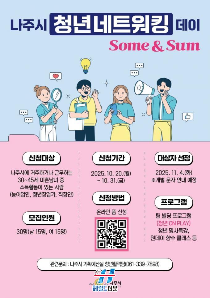 ³ªÁÖ½Ã(½ÃÀå À±º´ÅÂ)´Â ¿À´Â 11¿ù 15ÀÏ ³ªÁֽà ÀÏ¿ø¿¡¼ ¿¸®´Â ¡®Ã»³â ³×Æ®¿öÅ· µ¥ÀÌ¡¯ Çà»ç¸¦ ¾ÕµÎ°í Âü°¡ÀÚ¸¦ ¸ðÁýÇϰí ÀÖ´Ù°í 23ÀÏ ¹àÇû´Ù.