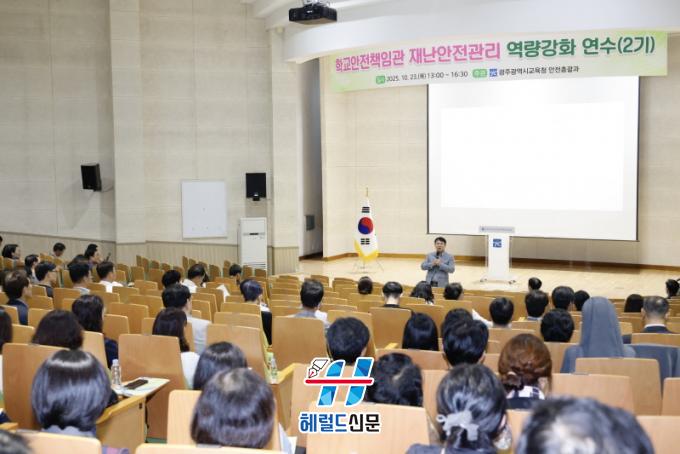 [Çì·²µå½Å¹® = ³ë½Â¾ð ±âÀÚ] ±¤Áֽñ³À°Ã»(±³À°°¨ ÀÌÁ¤¼±)Àº 23ÀÏ ±¤Áֽñ³À°Ã»½Ã¹ÎÇùÄ¡ÁøÈï¿ø ´ë°´ç¿¡¼ Çб³Àå, ±³°¨, ÇàÁ¤½ÇÀå µî 350¿© ¸íÀ» ´ë»óÀ¸·Î ¡®2025Çг⵵ Çб³¾ÈÀüÃ¥ÀÓ°ü Àç³¾ÈÀü°ü¸® ¿ª·®°È ¿¬¼ö(2±â)¡¯¸¦ ½Ç½ÃÇß´Ù.