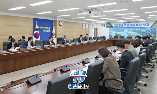 ÇÑÆí, ½É ¹Î ±º¼ö´Â À̹ø º¸°íȸ¿¡¼¡°2026³âÀº¡®Ãµ¸¸°ü±¤ Àӽǽô롯ÀÇ º»°Ý ÁøÀÔÇØ ¾ÈÂøÇÏ´Â ½Ã±â·Î, °¢ ºÎ¼°¡ ÇϳªµÈ ¸¶À½À¸·Î ±ºÁ¤ÀÇ ¿Ï¼ºµµ¸¦ ³ô¿©¾ß ÇÒ ¶§¡±¶ó¸ç ¡°ÁÖ¿ä Çٽɻç¾÷À» ºóÆ´¾øÀÌ ±âȹÇÏ°í ¿Ï¼ºµµ ÀÖ°Ô ÃßÁøÇØ, ±º¹ÎÀÌ Ã¼°¨ÇÏ°í °ø°¨ÇÏ´Â, Ȱ·Â ³ÑÄ¡´Â ÀÓ½ÇÀ» ¸¸µé¾î ´Þ¶ó¡±°í °Á¶Çß´Ù.