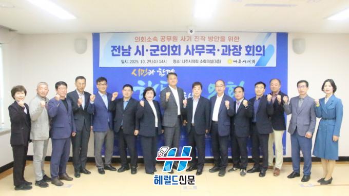 [Çì·²µå½Å¹® = ³ë½Â¾ð ±âÀÚ] ³ªÁÖ½ÃÀÇȸ(ÀÇÀå ÀÌÀç³²)´Â 10¿ù 29ÀÏ(¼ö) ¿ÀÈÄ 2½Ã, ³ªÁÖ½ÃÀÇȸ ¼ÒȸÀǽǿ¡¼ Àü³² ½Ã¡¤±ºÀÇȸ °£ Á¤º¸ ±³·ù¿Í Çö¾È ³íÀÇ, Á¤Ã¥ ÇùÀÇ µîÀ» À§ÇÑ ¡®Àü³² ½Ã¡¤±ºÀÇȸ »ç¹«±¹¡¤°úÀå ȸÀÇ¡¯¸¦ óÀ½À¸·Î °³ÃÖÇß´Ù°í ¹àÇû´Ù.