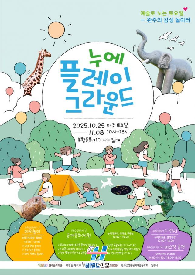 (Àç)¿ÏÁÖ¹®ÈÀç´Ü º¹ÇÕ¹®ÈÁö±¸ ´©¿¡(ÀÌ»çÀå À¯ÈñÅÂ)°¡ ¿À´Â 11¿ù 2ÀÏ(Åä), 8ÀÏ(Åä) ¿¹¼ú·Î ³ë´Â Åä¿äÀÏÀ» Å׸¶·Î ÁÖ¸» ÇÁ·Î±×·¥ <´©¿¡ Ç÷¹ÀÌ ±×¶ó¿îµå>¸¦ ¿î¿µÇÑ´Ù.