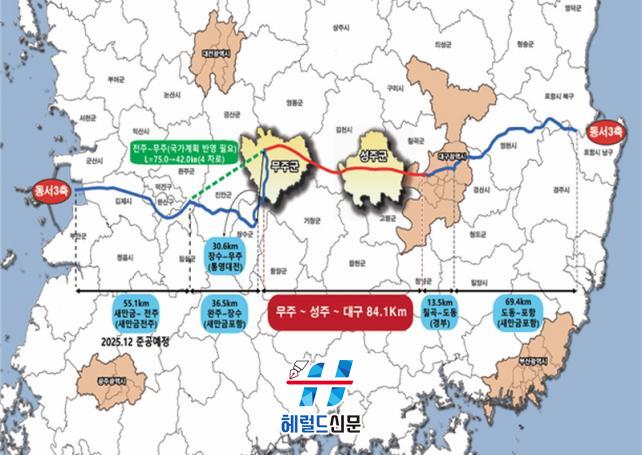 µ¿¼ 3Ãà ¿Ï¼ºÀ¸·Î ¡®Áö¿ª±ÕÇü¹ßÀü źź´ë·Î¡¯ ±â´ë ¹«ÁÖ~¼ºÁÖ~´ë±¸ ±¸°£, ¿Õº¹ 4Â÷·Î ÃÑ¿¬Àå 84.1km