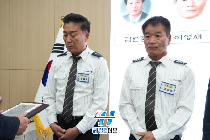 [Çì·²µå½Å¹® = ³ë½Â¾ð ±âÀÚ] ³ªÁÖ½Ã(½ÃÀå À±º´ÅÂ)´Â Áö³ 4ÀÏ ¿¸° 11¿ù Á¤·ÊÁ¶È¸¿¡¼ Ä£ÀýÇÏ°í ¾ÈÀüÇÑ ¿îÀüÀ¸·Î ½Ã¹ÎµéÀÇ ¸¶À½À» »ç·ÎÀâÀº ¹ö½º ¿îÀü¿ø 2¸í¿¡°Ô °¨»çÀÇ ¸¶À½À» ´ã¾Æ ³ªÁÖ½ÃÀå»óÀ» ¼ö¿©Çß´Ù°í ¹àÇû´Ù.