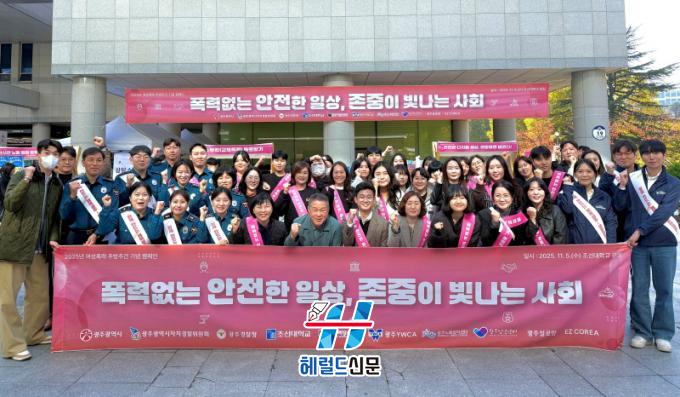 [Çì·²µå½Å¹® = ³ë½Â¾ð ±âÀÚ] ±¤ÁÖ±¤¿ª½Ã(½ÃÀå °±âÁ¤)´Â ¡®¿©¼ºÆø·Â Ãß¹æÁÖ°£¡¯(11¿ù25ÀÏ~12¿ù1ÀÏ)À» ¸Â¾Æ 5ÀÏ Á¶¼±´ëÇб³ Áß¾Óµµ¼°ü ±¤Àå¿¡¼ ¡®Æø·Â ¾ø´Â ¾ÈÀüÇÑ ÀÏ»ó, Á¸ÁßÀÌ ºû³ª´Â »çȸ¡¯¸¦ ÁÖÁ¦·Î ÇÕµ¿ Ä·ÆäÀÎÀ» ½Ç½ÃÇß´Ù.