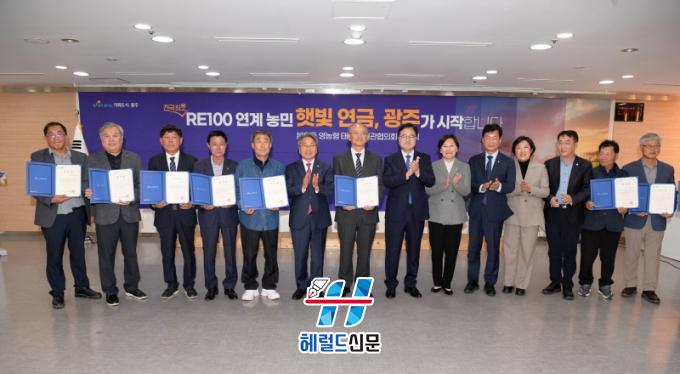[Çì·²µå½Å¹® = ³ë½Â¾ð ±âÀÚ] ±¤Áֽð¡ Àü±¹ ÃÖÃÊ·Î ¡®±â¾÷ RE100¡¯°ú ¿¬°èÇÑ ¿µ³óÇü ž籤 »ç¾÷¿¡ ³ª¼±´Ù. ÀÌ »ç¾÷Àº ±â¾÷¿¡´Â ģȯ°æÀü·Â Á¶´ÞÀ» ÅëÇÑ RE100 ½ÇÇöÀÇ ¹ßÆÇÀ», ³ó¹Î¿¡°Ô´Â Áö¼Ó°¡´ÉÇÑ ±âº»¼ÒµæÀÇ »õ ¸ðµ¨À» Á¦½Ã, ¿¡³ÊÁö Àüȯ°ú ³óÃÌ¼Òµæ ¾ÈÁ¤À» µ¿½Ã¿¡ ²ÒÇÑ´Ù.