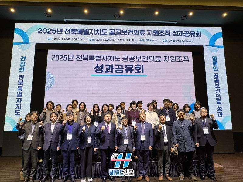 [Çì·²µå½Å¹® = ³ë½Â¾ð ±âÀÚ] ÀüºÏƯº°ÀÚÄ¡µµ´Â 6ÀÏ ÀüÁÖ ±×·£µåÈú½ºÅÏÈ£ÅÚ¿¡¼ °ø°øº¸°ÇÀÇ·áÁö¿ø´Ü°ú °ø°øº¸°ÇÀÇ·á ¼öÇà±â°ü °ü°èÀÚ 100¿© ¸íÀÌ Âü¼®ÇÑ °¡¿îµ¥ ¡®2025³â ÀüºÏƯº°ÀÚÄ¡µµ °ø°øº¸°ÇÀÇ·á Áö¿øÁ¶Á÷ ¼º°ú°øÀ¯È¸¡¯¸¦ °³ÃÖÇß´Ù.
