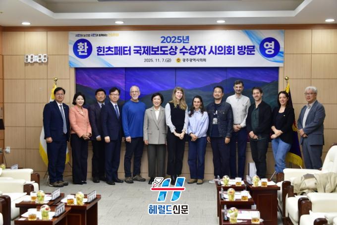 [Çì·²µå½Å¹® = ³ë½Â¾ð ±âÀÚ] ±¤ÁÖ±¤¿ª½ÃÀÇȸ(ÀÇÀå ½Å¼öÁ¤)´Â 7ÀÏ, ½ÃÀÇȸ ¿¸°½Ã¹ÎȦ¿¡¼ 2025³âµµ ¡®ÈùÃ÷ÆäÅÍ ±¹Á¦º¸µµ»ó¡¯ ¼ö»óÀÚµé°ú °øµ¿Á¶Á÷À§¿øÀå µî 20¿©¸íÀ» ÃÊûÇÏ¿© ÃàÇÏ ÇÏ°í °Ý·ÁÇÏ´Â ½Ã°£À» °¡Á³´Ù.