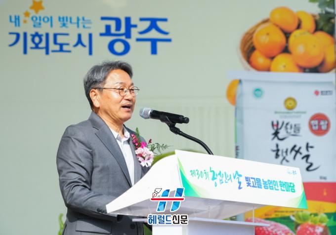 °±âÁ¤ ±¤ÁÖ½ÃÀåÀº ¡°³ó¾÷ÀÎÀÇ ³¯Àº ³ó¾÷ÀÇ Á߿伺°ú ³ó¾÷ÀÎÀÇ ³ë°í¸¦ µÇ»õ±â´Â ¶æ±íÀº ³¯ÀÌ´Ù¡±¸ç ¡°AI Á߽ɵµ½Ã ±¤ÁÖ¿¡ °É¸Â°Ô, AI±â¼úÀ» Ȱ¿ëÇÑ ½º¸¶Æ®ÆÊ Áö¿øÀ» È®´ëÇÏ´Â µî ³ó¾÷Á¤Ã¥À» Áö¼Ó ÃßÁøÇϰڴ١±°í ¸»Çß´Ù.