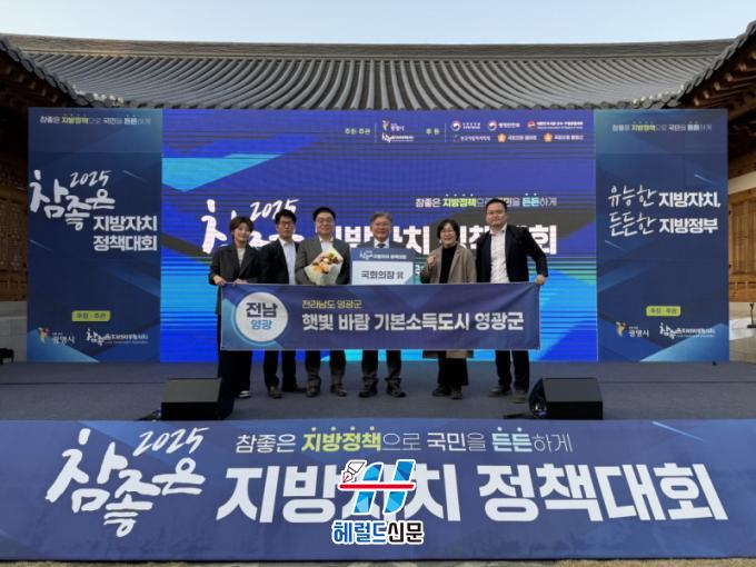 [Çì·²µå½Å¹® = ¼Û±Ù³² ±âÀÚ] ¿µ±¤±º(±º¼ö Àå¼¼ÀÏ)Àº 7ÀÏ ±¹È¸ÀÇ»ç´ç »ç¶ûÀç¿¡¼ ¿¸° ¡®2025 ÂüÁÁÀº Áö¹æÀÚÄ¡ Á¤Ã¥´ëȸ¡¯¿¡¼ ¡®ÇÞºû¹Ù¶÷ ±âº»¼Òµæ¡¯ Á¤Ã¥À» ¹ßÇ¥ÇÏ¸ç ±¹È¸ÀÇÀå»óÀ» ¼ö»óÇß´Ù.