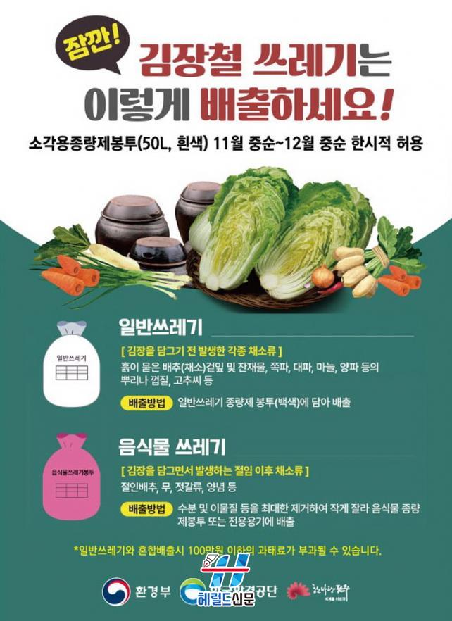 ÀÌ¿¡ µû¶ó ½Ã´Â ¼ö°Å¿î¹Ý ¹× ó¸® Áö¿¬À¸·Î ÀÎÇÑ ½Ã¹ÎµéÀÇ ºÒÆíÀ» ¿¹¹æÇϱâ À§ÇØ º»°ÝÀûÀÎ ±èÀåöÀÌ ½ÃÀ۵Ǵ ÀÌ´Þ Áß¼øºÎÅÍ ¿À´Â 12¿ù Áß¼ø±îÁö ¾à ÇÑ ´Þ µ¿¾È ÇѽÃÀûÀ¸·Î ±èÀå¾²·¹±â¸¦ 50LÂ¥¸® ÀϹݾ²·¹±â ¼Ò°¢¿ë ºÀÅõ¿¡ ´ã¾Æ ¹èÃâÇÒ ¼ö ÀÖµµ·Ï Çã¿ëŰ·Î Çß´Ù.