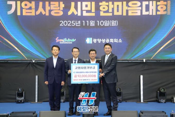 [Çì·²µå½Å¹® = ³ë½Â¾ð ±âÀÚ] ±¤¾ç½Ã´Â Áö³ 11¿ù 10ÀÏ ±¤¾ç½Ç³»Ã¼À°°ü¿¡¼ ¿¸° ¡¸Á¦4ȸ ±¤¾ç½Ã ±â¾÷ÀÎÀÇ ³¯¡¹ ±â³ä½Ä¿¡¼ Æ÷Ç×»ó°øÈ¸ÀǼÒ(ȸÀå ³ªÁÖ¿µ)¿Í 13°³ ȸ¿ø»ç ÀÓÁ÷¿øÀÌ ±¤¾ç½Ã¿¡ °íÇâ»ç¶û ±âºÎ±Ý 9,200¸¸ ¿øÀ» Àü´ÞÇß´Ù°í ¹àÇû´Ù.