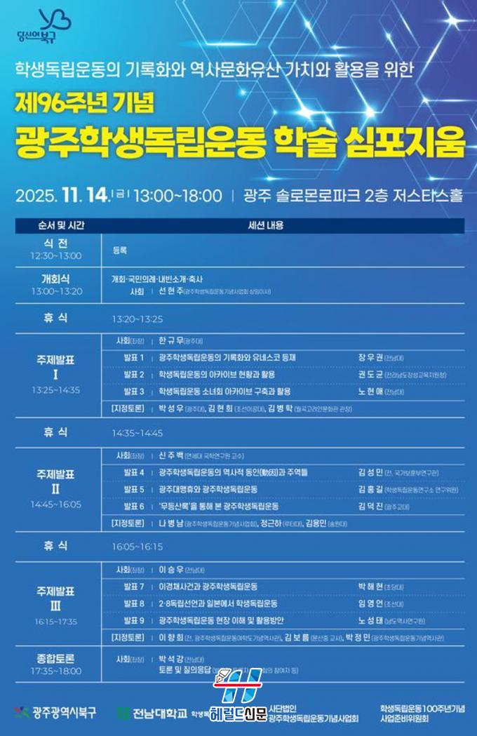 [Çì·²µå½Å¹® = Á¤µ·Ã¶ ±âÀÚ] ±¤ÁÖ±¤¿ª½Ã ºÏ±¸(±¸Ã»Àå ¹®ÀÎ)°¡ ¿À´Â 14ÀÏ ±¤ÁÖ ¼Ö·Î¸ó·ÎÆÄÅ© Àú½ºÆ¼½ºÈ¦¿¡¼ ¡®Çлýµ¶¸³¿îµ¿ 96Áֳ⠱â³ä Çмú ½ÉÆ÷Áö¾ö¡¯À» °³ÃÖÇÑ´Ù°í 13ÀÏ ¹àÇû´Ù.