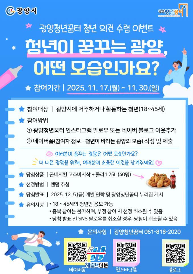 [Çì·²µå½Å¹® = ³ë½Â¾ð ±âÀÚ] ±¤¾çû³â²ÞÅͰ¡ 11¿ù 17ÀϺÎÅÍ 11¿ù 30ÀϱîÁö ¡®Ã»³âÀÌ ²Þ²Ù´Â ±¤¾ç, ¾î¶² ¸ð½ÀÀΰ¡¿ä?¡¯¸¦ ÁÖÁ¦·Î û³â ÀÇ°ß ¼ö·Å À̺¥Æ®¸¦ ÁøÇàÇÑ´Ù.