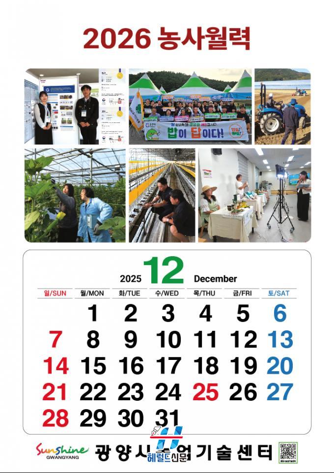 [Çì·²µå½Å¹® = ³ë½Â¾ð ±âÀÚ] ±¤¾ç½Ã(½ÃÀå Á¤ÀÎÈ)´Â ³ó¾÷ÀεéÀÇ Àû±â ¿µ³óÀ» µ½±â À§ÇØ Á¦ÀÛÇÑ ¡®2026³âµµ ³ó»ç¿ù·Â¡¯ 2,600ºÎ¸¦ 11¿ù 17ÀÏ(¿ù)ºÎÅÍ À¾¸éµ¿ ³ó¾÷Àλó´ã¼Ò¿¡¼ ¹èºÎÇÑ´Ù°í ¹àÇû´Ù.