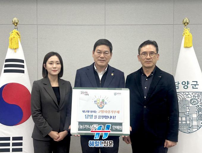 [Çì·²µå½Å¹® = Àü¿µ±Ô ±âÀÚ] ´ã¾ç±º(±º¼ö Á¤Ã¶¿ø)Àº Áö³ 14ÀÏ ¢ß°¡³ªÁ¾¹¦ ¾È¿¹¿ø ´ëÇ¥°¡ ´ã¾ç Áö¿ª»çȸ ¹ßÀü ¹× »ó»ýÀ» À§ÇØ °íÇâ»ç¶û±âºÎ±Ý 500¸¸ ¿øÀ» ±âŹÇß´Ù°í ÀüÇß´Ù.