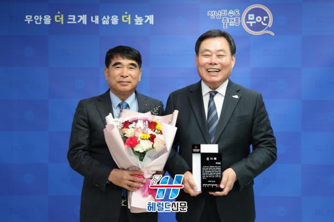 [Çì·²µå½Å¹® = Àü¿µ±Ô ±âÀÚ] Àü³² ¹«¾È±º(±º¼ö ±è»ê)Àº Áö³ 6ÀÏ ³ª´®¹®È È®»ê¿¡ ±â¿©ÇÑ °ø·Î¸¦ ÀÎÁ¤¹Þ¾Æ Àü³²»çȸº¹Áö°øµ¿¸ð±Ýȸ(ȸÀå Ç㿵ȣ)·ÎºÎÅÍ °¨»çÆÐ¸¦ ¼ö»óÇß´Ù.