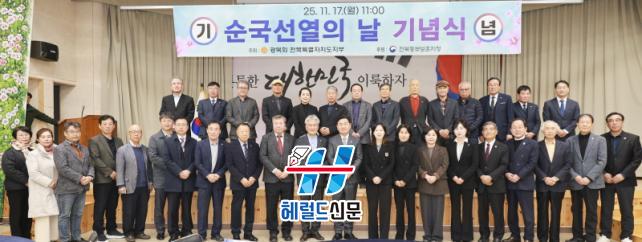 [Çì·²µå½Å¹® = ³ë½Â¾ð ±âÀÚ] ÀüºÏƯº°ÀÚÄ¡µµ ±è°ü¿µ µµÁö»ç´Â 11¿ù 17ÀÏ ÀüºÏº¸ÈÆÈ¸°ü¿¡¼ ¿¸° Á¦86ȸ ¼ø±¹¼±¿ÀÇ ³¯ ±â³ä½Ä¿¡ Âü¼®ÇØ ¼ø±¹¼±¿µéÀÇ ¼þ°íÇÑ Èñ»ýÁ¤½ÅÀ» ±â¸®°í À¯°¡Á·°ú ±¤º¹È¸¿øµéÀ» À§·ÎÇß´Ù.