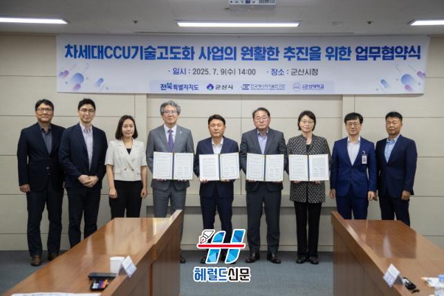 [Çì·²µå½Å¹® = ³ë½Â¾ð ±âÀÚ] ±º»ê½Ã°¡ ¡®2025³âµµ Â÷¼¼´ë CCU(Carbon Capture Utilization, ÀÌ»êÈź¼Ò Æ÷Áý¡¤È°¿ë) ±â¼ú °íµµÈ»ç¾÷ ½ÇÁõ¿¬±¸°úÁ¦¡¯ÃßÁø¿¡ º»°Ý ½Ãµ¿À» °É¾ú´Ù.