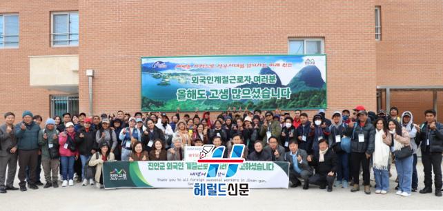 [Çì·²µå½Å¹® = ³ë½Â¾ð ±âÀÚ] Áø¾È±º(±º¼ö ÀüÃἺ)Àº 18ÀÏ, Áø¾È±º ³ó¾÷±Ù·ÎÀÚ ±â¼÷»ç¿¡¼ MOU ü°á±¹ÀÎ Çʸ®ÇÉ °èÀý±Ù·ÎÀÚ 74¸íÀÇ ´Üü Ãâ±¹À» °Ý·ÁÇÏ¸ç ³ó¹ø±â ÀÏ¼Õ ºÎÁ· ÇØ¼Ò¿¡ Èû¾´ ±Ù·ÎÀÚµéÀÇ ³ë°í¿¡ °¨»çÀÇ ¸¶À½À» ÀüÇß´Ù°í ¹àÇû´Ù.