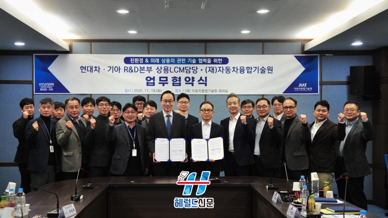 [Çì·²µå½Å¹® = ³ë½Â¾ð ±âÀÚ] ÀÚµ¿Â÷À¶ÇÕ±â¼ú¿ø(¿øÀå ¿À¾ç¼·)°ú Çö´ëÂ÷¡¤±â¾Æ R&Dº»ºÎ »ó¿ëLCM´ã´ç(ºÎ»çÀå ¹Ú»óÇö)Àº 11¿ù 18ÀÏ Ä£È¯°æ ¹× ¹Ì·¡»ó¿ëÂ÷ ºÐ¾ß ±â¼úÇù·ÂÀ» À§ÇÑ ¾÷¹«Çù¾à(MOU)¸¦ ü°áÇß´Ù.