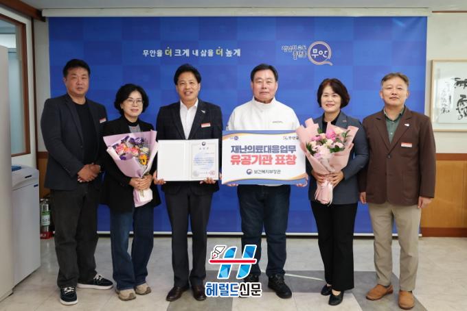 [Çì·²µå½Å¹® = Àü¿µ±Ô ±âÀÚ] ¹«¾È±º(±º¼ö ±è»ê)Àº Áö³ 14ÀÏ Àç³ÀÀ±ÞÀÇ·á ´ëÀÀ ºÐ¾ß¿¡¼ Ź¿ùÇÑ °ø·Î¸¦ ÀÎÁ¤¹Þ¾Æ º¸°Çº¹ÁöºÎ·ÎºÎÅÍ Àç³ÀÀ±ÞÀÇ·á ´ëÀÀ¾÷¹« À¯°ø Àå°ü ǥâÀ» ¹Þ¾Ò´Ù.