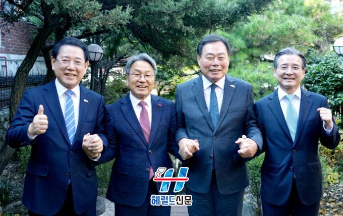 ±è¿µ·Ï Àü¶ó³²µµÁö»ç(¿ÞÂÊ)°¡ 19ÀÏ ¼¿ï¿¡¼ ±¤ÁÖ ¹Î°£¡¤±º°øÇ× ÅëÇÕÀÌÀü Çö¾È ³íÀÇ¿Í °ü·Ã, ±è¿ë¹ü ´ëÅë·É½Ç Á¤Ã¥½ÇÀß(¿À¸¥ÂÊ), °±âÁ¤ ±¤ÁÖ±¤¿ª½ÃÀå(¿ÞÂÊ µÎ ¹øÂ°), ±è»ê ¹«¾È±º¼ö¿Í °£´ãȸ¸¦ ÇÑ ÈÄ ±â³äÃÔ¿µÀ» Çϰí ÀÖ´Ù.