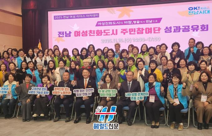 [Çì·²µå½Å¹® = ³ë½Â¾ð ±âÀÚ] Àü¶ó³²µµ´Â 2025³â Àü³²¿©¼ºÄ£Èµµ½Ã ÁÖ¹ÎÂü¿©´Ü ¼º°ú°øÀ¯È¸¸¦ Áö³ 19ÀÏ ÇØ³²¹®È¿¹¼úȸ°ü¿¡¼ °³ÃÖ, 9°³ ¿©¼ºÄ£Èµµ½Ã ½Ã±º¹Î ÁÖ¹ÎÂü¿©´Ü°ú ¡®¸ðµÎ°¡ ÆòµîÇÏ°í ¾ÈÀüÇÑ, »ì±â ÁÁÀº Àü³²¡¯ ¸¸µé±â ¹æ¾ÈÀ» ³íÀÇÇß´Ù.
