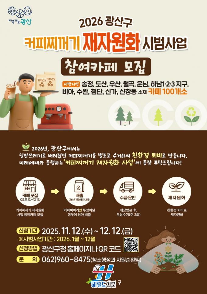 [Çì·²µå½Å¹® = ³ë½Â¾ð ±âÀÚ] ±¤Áֽà ±¤»ê±¸(±¸Ã»Àå ¹Úº´±Ô)´Â Ä¿ÇǸ¦ ÃßÃâÇÏ°í ³²Àº Ä¿ÇÇ Â±â¸¦ ½Ä¹° ºñ·á·Î µÇ»ì¸®´Â ¡®Ä¿ÇÇÂ±â ÀçÀÚ¿øÈ ½Ã¹ü»ç¾÷¡¯À» ÃßÁøÇÑ´Ù°í ¹àÇû´Ù.