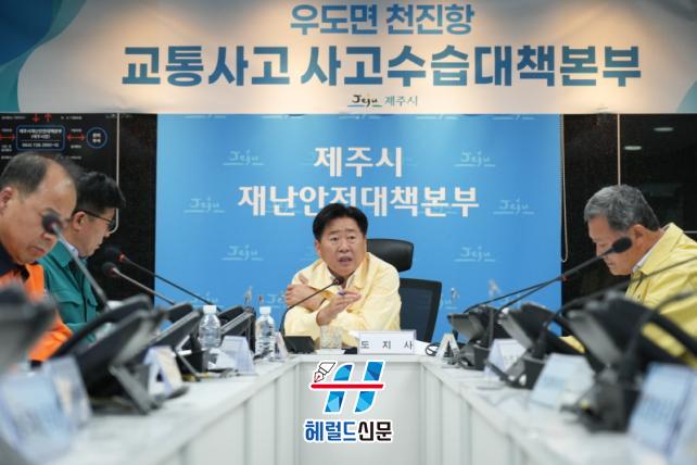 [Çì·²µå½Å¹® = ³ë½Â¾ð ±âÀÚ] ¿À¿µÈÆ Á¦ÁÖÆ¯º°ÀÚÄ¡µµÁö»ç´Â 24ÀÏ ¿ìµµ õÁøÇ׿¡¼ ¹ß»ýÇÑ Â÷·® µ¹Áø »ç°í ÇöÀåÀ» ±ä±Þ ¹æ¹®ÇØ ÇÇÇØÀÚ ±¸Á¶ »óȲÀ» Á¡°ËÇÏ°í »ç°í ¼ö½ÀÀ» Á÷Á¢ ÁöÈÖÇß´Ù.