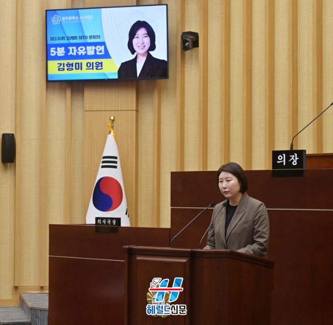 [Çì·²µå½Å¹® = ³ë½Â¾ð ±âÀÚ] ±¤ÁÖ ¼±¸ÀÇȸ ±èÇü¹Ì ÀÇ¿øÀÌ 25ÀÏ Á¦336ȸ Á¦2Â÷ Á¤·Êȸ Á¦1Â÷ º»È¸ÀÇ¿¡¼ 5ºÐ ¹ß¾ðÀ» ÅëÇØ º¸ÇàÀÚ ¾ÈÀü°ú ±³Åë ÆíÀÇ Çâ»óÀ» À§ÇØ ´ë°¢¼± Ⱦ´Üº¸µµ µµÀÔÀÌ ÇÊ¿äÇÏ´Ù°í °Á¶Çß´Ù.