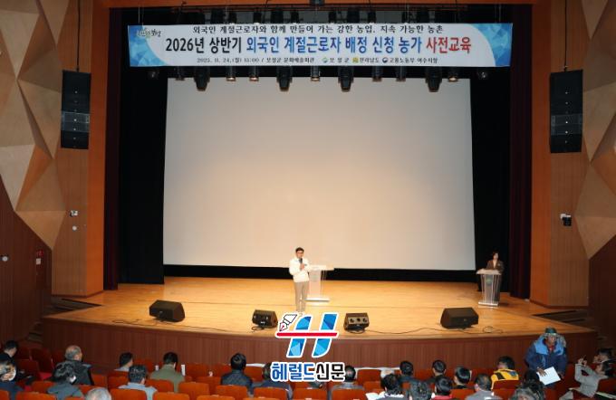 [Çì·²µå½Å¹® = Àü¿µ±Ô ±âÀÚ] º¸¼º±º(±º¼ö ±èö¿ì)Àº Áö³ 24ÀÏ º¸¼º±º ¹®È¿¹¼úȸ°ü¿¡¼ ¡®2026³â ¿Ü±¹ÀÎ °èÀý±Ù·ÎÀÚ Á¦µµ¡¯¿¡ ´ëÇØ »ó¹Ý±â ¹èÁ¤ ½Åû ³ó°¡¸¦ ´ë»óÀ¸·Î »çÀü ±³À°À» ½Ç½ÃÇß´Ù°í ¹àÇû´Ù.