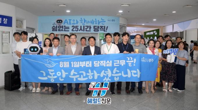 ±¤Áֽô ¾Õ¼ Áö³ÇØ 8¿ù Ư¡¤±¤¿ª½Ã ÃÖÃÊ·Î ´çÁ÷Á¦¸¦ Àü¸é ÆóÁöÇϰí ÀΰøÁö´É(AI) ±â¹Ý ´çÁ÷¹Î¿ø ÀÀ´ë ½Ã½ºÅÛÀÎ ¡®AI ´çÁö±â¡¯¸¦ µµÀÔ, ÇàÁ¤Çõ½ÅÀ» ¼±µµÇß´Ù. ±¤ÁÖÀÇ ¼±µµÀûÀÎ ÇàÁ¤ º¯È°¡ Á¤ºÎ Á¤Ã¥ ÃßÁøÀÇ ±â¹ÝÀÌ µÆ´Ù´Â Á¡¿¡¼ ÇàÁ¤Çõ½ÅÀÇ ¸ð¹ü»ç·Ê·Î Æò°¡¹Þ°í ÀÖ´Ù.