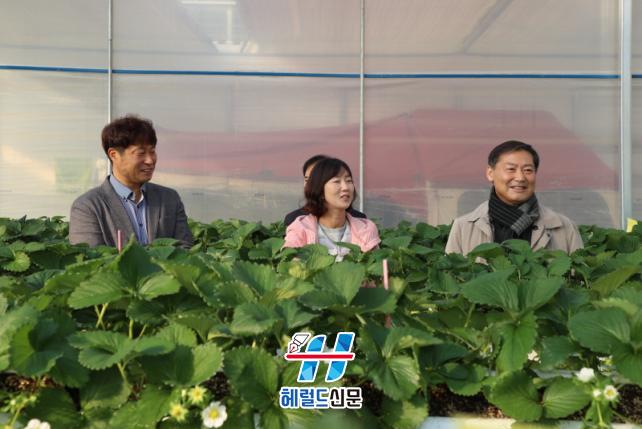 ÀÌ¾î ºÎ±Í¸é ¼¼µ¿¸®ÀÇ »þÀθӽºÄ¹ ³ó°¡¸¦ ¹æ¹®ÇØ Åä°æÀç¹è ºñ´ÒÇϿ콺 ¿î¿µ»óȲ°ú Æ÷µµ Àç¹è ÇöȲÀ» Á¡°ËÇß´Ù. ³ó°¡ÁÖ´Â ¿ÃÇØ ¼öÈ®À» ¸¶Ä£ ÈÄ ÇöÀç ÀúÀå ¹× ÃâÇÏ Áغñ¸¦ ÁøÇàÇϰí ÀÖ´Â »óȲ¿¡ ´ëÇØ ¼³¸íÇÏ¸ç ½Ã¼³À» ¾È³»Çß´Ù. ƯÈ÷ Áö³ÇØ ÀçÇØ·Î ÇÇÇØ¸¦ ÀÔ¾úÀ¸³ª ±º¿¡¼ Á¦°øÇÑ Áö¿ø¿¡ ´ëÇØ °¨»çÀÇ ¶æÀ» ÀüÇϸç Áö¿ª »þÀθӽºÄ¹ »ê¾÷ ¹ßÀüÀ» À§ÇÑ Á¤Ã¥Àû º¸¿Ï Àǰߵµ Á¦½ÃÇß´Ù.