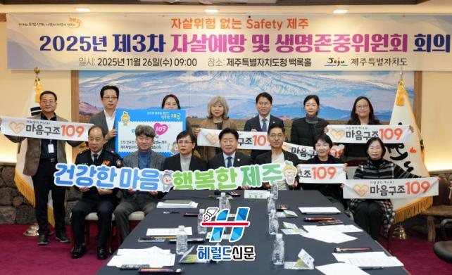 Á¦ÁÖµµ´Â 26ÀÏ ¿ÀÀü µµÃ» ¹é·ÏȦ¿¡¼ µµÁö»ç Á÷¼Ó ¡®2025³â Á¦3Â÷ Àڻ쿹¹æ ¹× »ý¸íÁ¸ÁßÀ§¿øÈ¸¡¯ ȸÀǸ¦ °³ÃÖÇß´Ù. ¿À¿µÈÆ Áö»ç¿Í À§¿ø 14¸í µî 30¿© ¸íÀÌ Âü¼®ÇÑ À̳¯ ȸÀÇ¿¡¼´Â Á¦ÁÖÁö¿ªÀÇ ½É°¢ÇÑ ÀÚ»ìÁõ°¡ ¹®Á¦¸¦ °øÀ¯Çϰí, ´ëÀÀ °È¸¦ À§ÇÑ Çù·Â¹æ¾ÈÀ» ³íÀÇÇß´Ù.