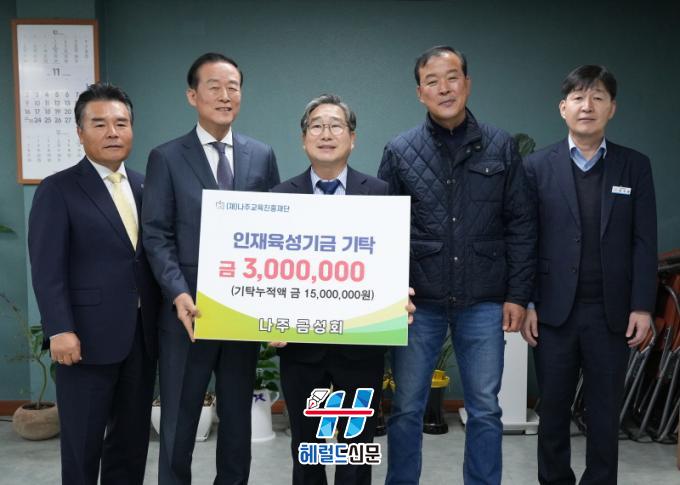 [Çì·²µå½Å¹® = ³ë½Â¾ð ±âÀÚ] Àç°æ³ªÁÖÇâ¿ì¸ðÀÓ ¡®³ªÁÖ ±Ý¼ºÈ¸¡¯°¡ Áö¿ª Çлý Áö¿øÀ» À§ÇÑ ÀåÇбâ±Ý ±âŹÀ» ÅëÇØ ¹Ì·¡ ¼¼´ëÀÇ ¼ºÀå ±â¹Ý Á¶¼º¿¡ ÈûÀ» º¸ÅÂ¸ç °íÇâ °øµ¿Ã¼¸¦ À§ÇÑ ³ª´® ¹®È È®»ê¿¡ ´Ù½Ã Çѹø ¿Â±â¸¦ ´õÇß´Ù.